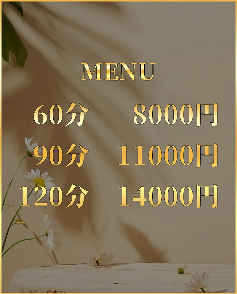 当店では、アロマオイルの効能と当店自慢のセラピストによるリンパマッサージの相乗効果による、癒しのひとときをお客様お一人お一人にお届けしております、自然で心やすらぐ優美な香りを、施術中はもちろんご帰宅お休みになってから翌日朝目覚めでまで楽しんで頂けます、どうぞゆっくりご堪能ください。